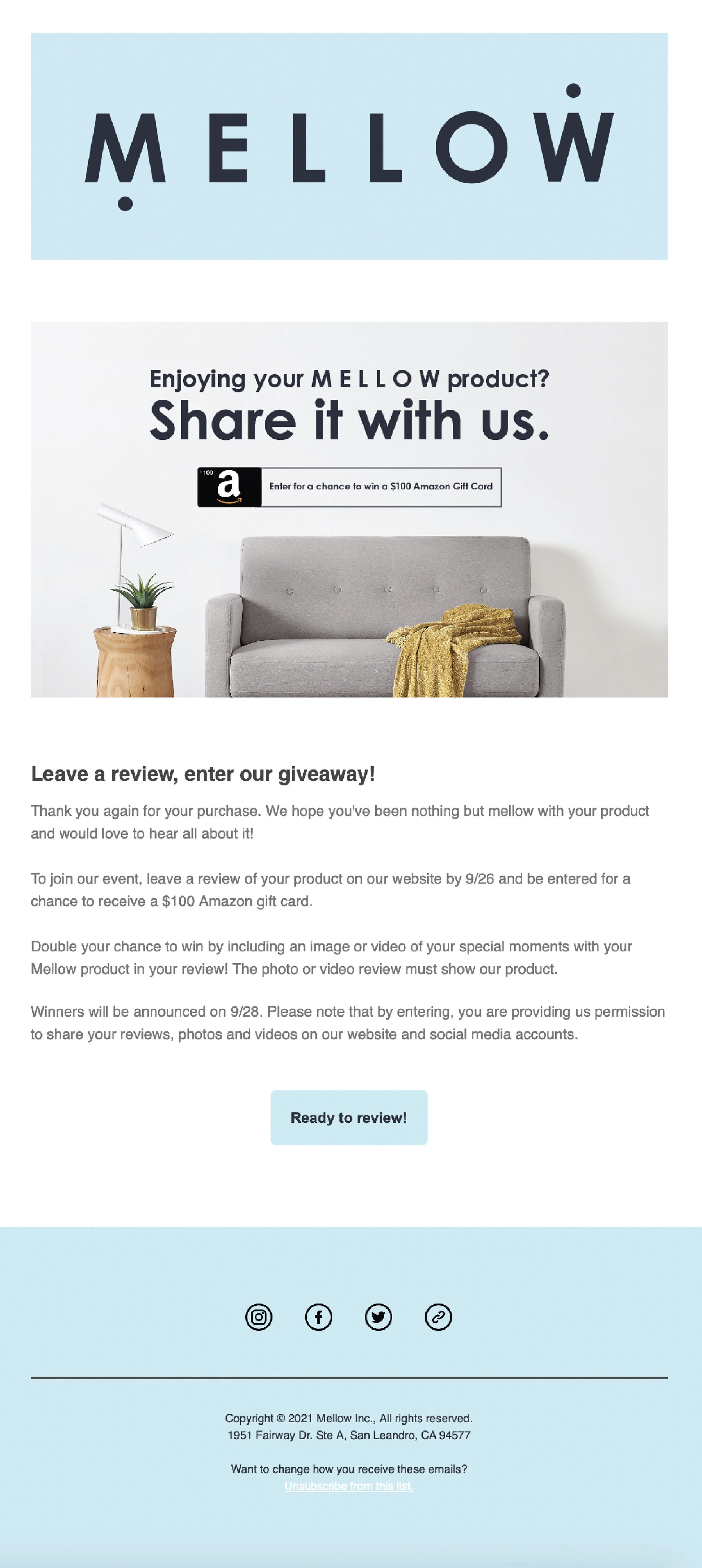 With Mellow’s first ever giveaway, I created this email banner for customers to enter their chance to win a gift card.